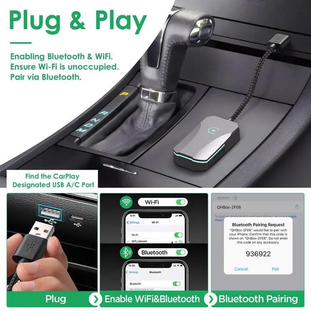 This design helps mitigate chip aging over time, ensuring more durable and reliable performance. ^^ Durable & WarrantyDeerdance wireless CarPlay adapter comes with extra USB C to USB A adapter, both USB ports passed 10, 000+ insertions tests to ensure long-lasting durability. Please plug the wireless CarPlay adapter to the CarPlay-designated port (typically located in the central console of the car). Always keep Wi-Fi on and unoccupied. We provide 18 months reliable warranty. Any problems, do solve your troubles within 24 hours! No risky to try, buy with confidence!