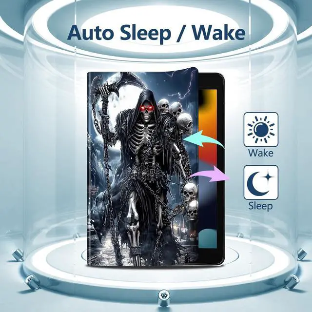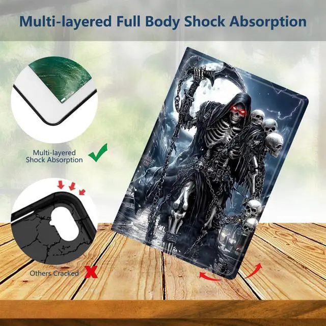 DHYYDSQZ Case for All-New Kindle Fire HD 10 & 10 Plus Tablet (13th/11th Generation, 2023/2021 Release) 10.1" PU Leather Slim Stand Smart Cover with Auto Sleep/Wake, Grim Skulls Reaper