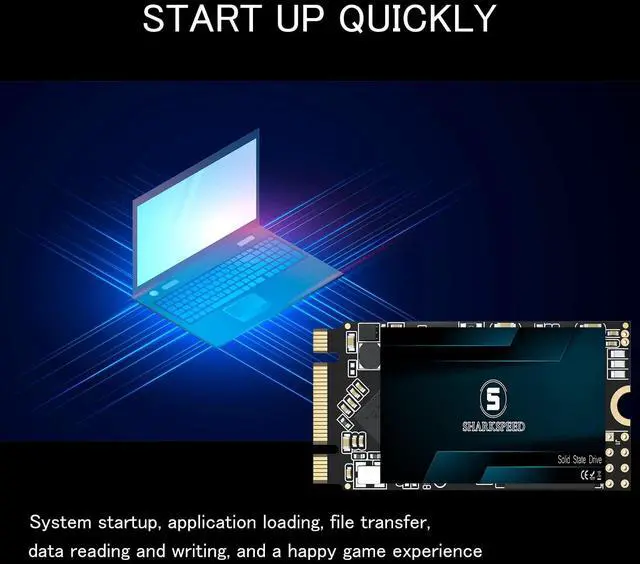 High Performance & System StabilityS SHARKSPEEDs newly upgraded SSD offers nonparallel high performance with the latest 3D NAND flash technology, an intelligent TLC chip, state-of-the-art components, and smart optimization to quickly upgrade your laptop or desktop PC. ^^ Efficient TransferThe M. 2 2242 SSD features a SATA III 6GB/s transfer interface with a read speed of up to 550 MB/s and a write speed of up to 500 MB/s, enabling faster data access, boot, and file transfer, improving the overall system response. It is five times faster than regular hard drives, it can speed up games, and improve productivity in the office.