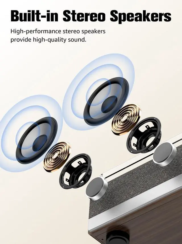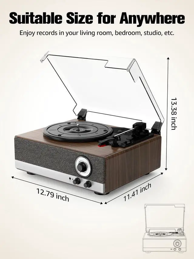 ^^ Retro-Modern Design: Crafted from premium wood, this record player seamlessly blends vintage charm with modern style. The dust cover protects the player while also serving as a stylish home decor item. The perfect size allows the player to be placed anywhere in your home, whether in your living room, bedroom, or office. ^^