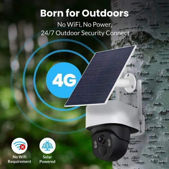 Wireless & Solar Powered: Completely wire-free design with a 5W high-efficiency solar panel and a 9200mAh rechargeable battery. No power cords, no Ethernet cables, no drilling required. Mount it in minutes and enjoy continuous operation perfect for off-grid areas with no electricity or WiFi. ^^ Ideal for Remote & Off-Grid