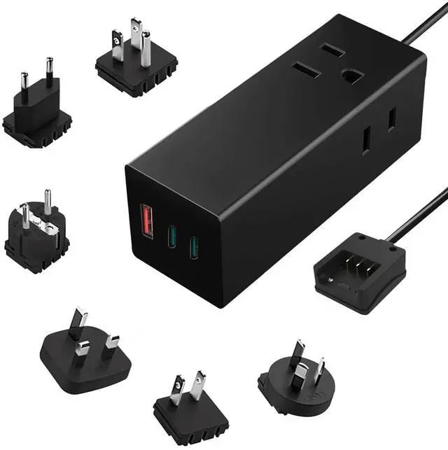 5 in 1 POWER STRIP - 1 USB inputs + 2 USB-C Input is more than you need from this ultra compact smallest most powerful 65W Charger. 2 USA Outlets - Allows you to plug 3 USB devices plus 2 Additional Devices through the USA Sockets.