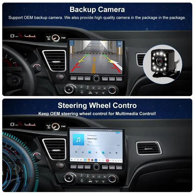 Perfect Fit for Your Civic Custom Design for Honda Civic 2013 2014 2015. Package come with everything you need to install. No modifications or wiring hacks neededjust plug in and enjoy a factory-fresh upgrade. Clear instruction and user manual support you install the stereo all by yourself. ^^ Wireless Smartphone IntegrationEffortlessly connect your smart Phone or Android device with wireless CarPlay and Android Auto. Access your favorite navigation apps, music playlists, and messaging services directly on the in-dash screenno cables required. Enjoy a clutter-free setup and a safer, more intuitive driving experience.