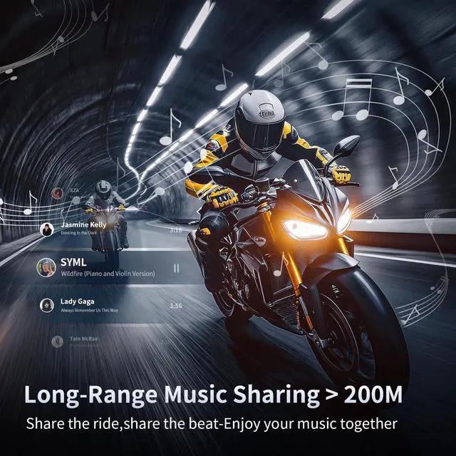Music Sharing & FM Radio: The T5 motorcycle intercom lets two riders share music with a range of over 0.12 milesmuch farther than standard bluetooth headsets, which are limited to just 32 feet. Paired with a built-in FM radio, it adds more entertainment and makes long rides more enjoyable, engaging, and full of shared moments ^^