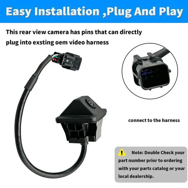 ^^ Easy Install: This is an aftermarket backup camera. This parking camera has pins that can plug into the vehicle's wiring using a factory style connector. Easy Installation, no need to drill hole for bracket installation, save your time.