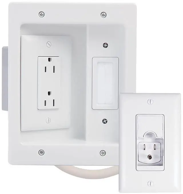 Easily hide power and AV cables inside the wall without modifying electrical wiring. This kit includes everything needed to extend power to wall mount TV installations while providing the ultimate flexibility with the innovative decorator based power inlet strap and the recessed box with duplex power receptacle. Additional flexibility for TV Placement with a 12' in-wall cable.