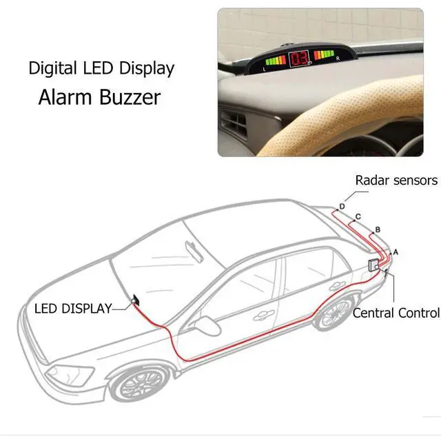 FeatureBrand New and Advance Quality! LED digital display with BiBi sound reminder. 4 sensor system, double CPU and advanced chipset to enhanced coverage and detection. Be beneficial to prevent dangerous and costly collisions. Help to provide increased safety for passengers, pedestrians and family members who happen to be around the moving vehicle. Detect small children and low walls as well. Anti-freeze and rain proof. Easy installation and operation. With a drill head, convenient to drill hole.