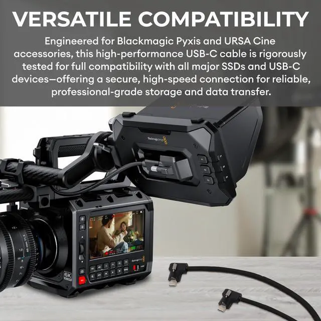 The 30cm model also has a right-angle to straight-end option for extra versatility ^^ Universal Compatibility Thoroughly tested for dependability, this cable is compatible with leading SSDs and other USB-C peripherals. It is also a high-quality replacement for OEM cables on Blackmagic Pyxis & URSA Cine cameras.