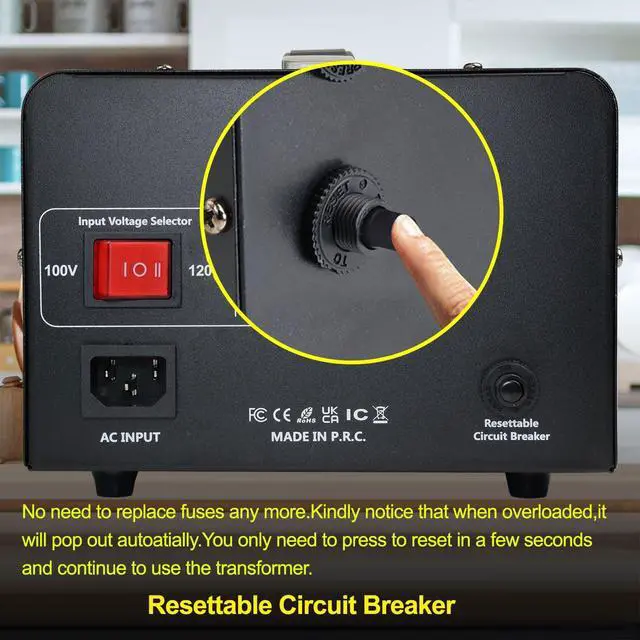 Voltage transformer 120V to 100VIt converts 120V supply voltage in the U. S., Canada and Mexico to 100V for use in Japanese appliances; ^^ Voltage transformer 100V to 120VIt converts Japan's 100V supply voltage to 120V for use in appliances in the U. S., Canada and Mexico. [Detachable Power Cord] Easy Switching to the Japanese power cord. ^^ Resettable Circuit Breaker No need to replace fuses any more. Kindly notice that when overloaded, it will pop out autoatially. You only need to press to reset in a few seconds and continue to use the transformer.
