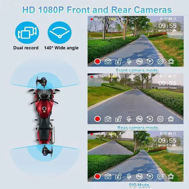 Wired Controller: The motorbike camera is equipped with wired controller that allows riders to one-key lock screen, rainy days to prevent mistouch. Short press any button once to enter emergency recording, save important accident evidence. The indicator light can display the recording status ^^ Waterproof and Sun VisorOn rainy days, the excellent water resistance of the dash cam will increase your cycling comfort. It is also equipped with a sun visor, which makes it easy to view the display image even in sunlight ^^ Seamless Loop