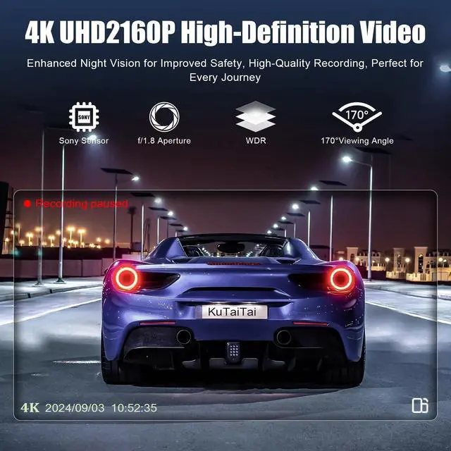 For Lexus GX550 2024 2025 (3rd Gen/J250)Say goodbye to messy wiring! Specifically designed for Lexus GX550 Premium, Luxury, Overtail 2024 2025 vehicle styles. KuTaiTai 4K dual dash cam is OEM-style installation! Just plug it in, and youre ready to rollno complicated rewire necessary! ^^ Built-in WiFi & Free APPEnjoy seamless integration with both Android and iOS devices through the dedicated free app. Preview, download, and share your recordings in real-time, making video management effortless ^^ High-Definition Video CaptureEquipped with an f/ 1.8 big aperture lens and advanced WDR technology, this dash cam delivers stunning 2160P/30fps video resolution, ensuring clear and vibrant imagery in all lighting conditions.