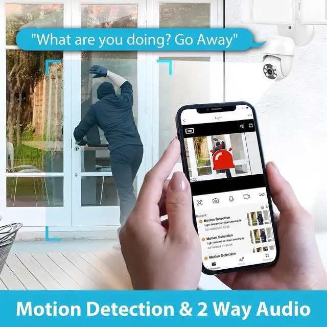 Instant Alerts: Receive immediate mobile notifications when motion is detected. Our 180PIR motion sensor triggers instant alerts, keeping you informed of any activity. This floodlight camera provides enhanced security and peace of mind. The wide detection range of this flood light camera outdoor offers comprehensive coverage. ^^ Two-Way Audio & Flexible