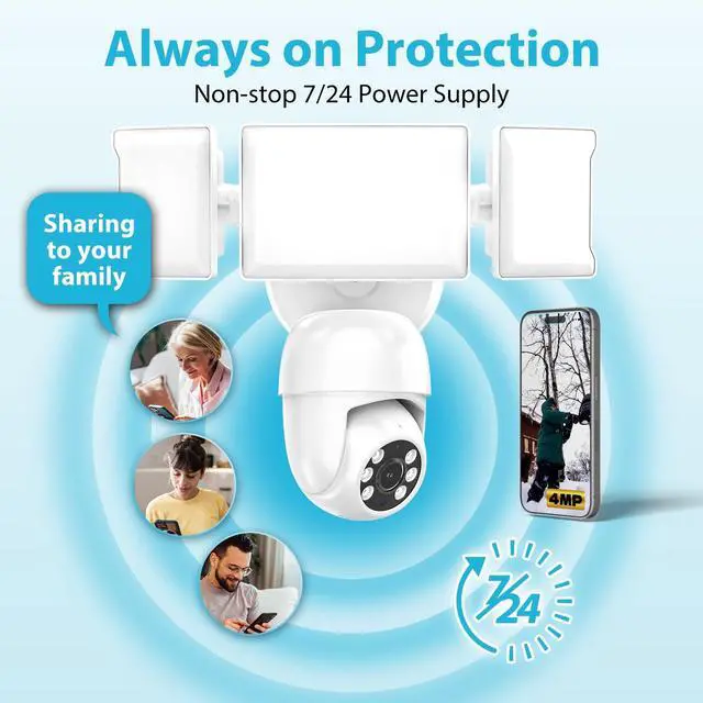 Color Night Vision: Capture vibrant, rich recordings day and night. Our advanced 2K QHD resolution delivers incredibly detailed footage, even in low-light conditions, ensuring vivid images for 24/7 security and surveillance. This flood light camera outdoor provides superior clarity compared to standard cameras. ^^ 360Panoramic