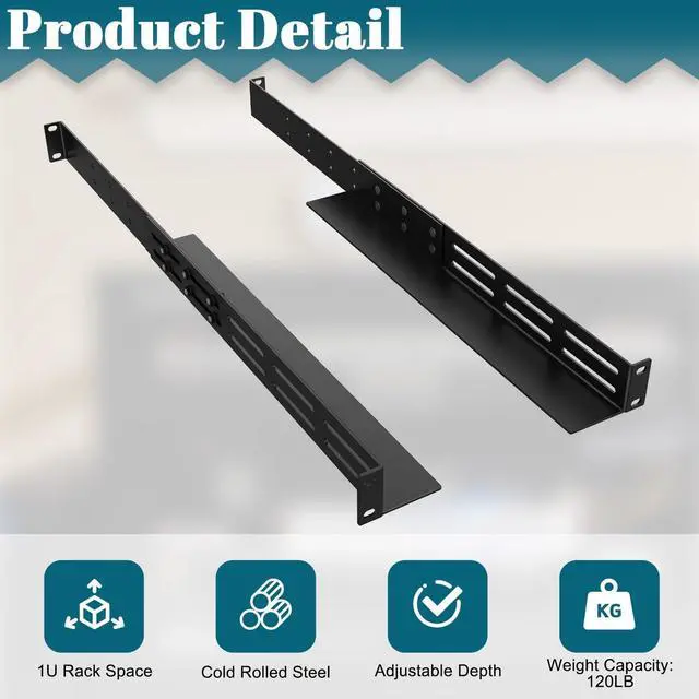 SUPPORT: This 1U server rails constructed from robust cold-rolled steel, provides front and rear support to prevent sagging. Securely holds servers, UPS units, or network switches weighing up to 120 lbs with maximum stability ^^