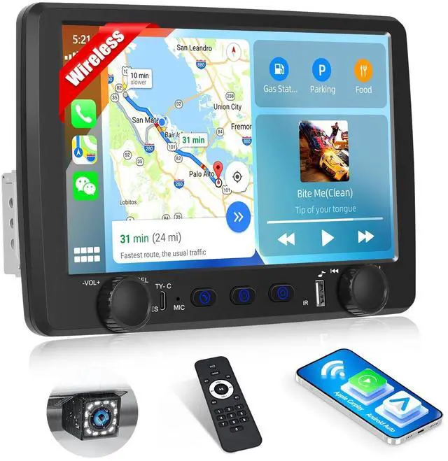 Installation size: 178mm*50mm*. Support FM, Bluetooth, Wireless carplay&Android Auto, backup camera, etc.