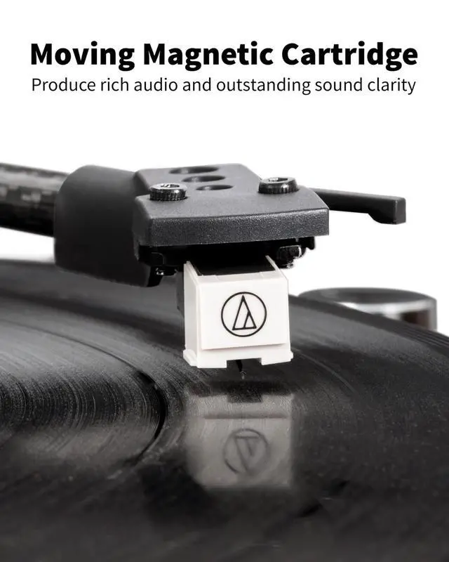 Line Out: The built-in preamp offers flexibility in setting up with different audio systems. The record player includes Phono/Line Switch for playback with or without a Phono amplifier, and you can use the included RCA cables to connect active speakers or an external amplifier for an even greater sound experience. ^^ Moving Magnet Cartridge & Static-Balanced Tonearm: Newly designed carbon fiber tonearm helps the AT-3600L MM cartridge precisely track the grooves of vinyl, maintaining the clarity and channel balance of the record, preventing wear, skipping, and distortion, for smooth playback as intended.