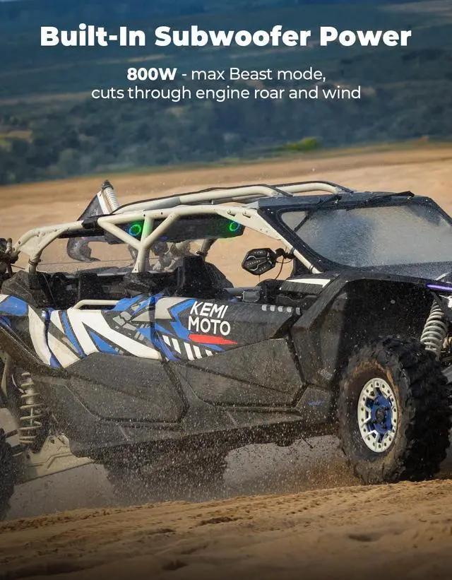 Dynamic RGB & Reading Light: KEMIMOTO UTV sound bar features multi-color RGB LED lights on the front and sides, with 230+ dynamic lighting modes (music sync, solid, fading, jump, or off) that transform your journey. Sync the lights to your music for a fully immersive show, or switch to DOME Mode for a bright white reading light for maps, gear, or campfire conversations after the sun goes down ^^ FM Built for