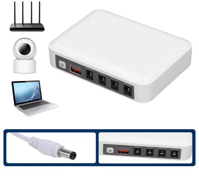 Diverse Output Options: This uninterruptible power supply comes with a range of output ports, including DC12V 2A maximum, DC12V 2A maximum, DC9V 2A maximum, DC5V 2A maximum and USB 5V 2A maximum. The 5.5 x 2.1 mm DC connector can handle currents below 2A, making it not only suitable for keeping routers and modems operational but also suitable for quickly charging tablets and smartphones. 3.