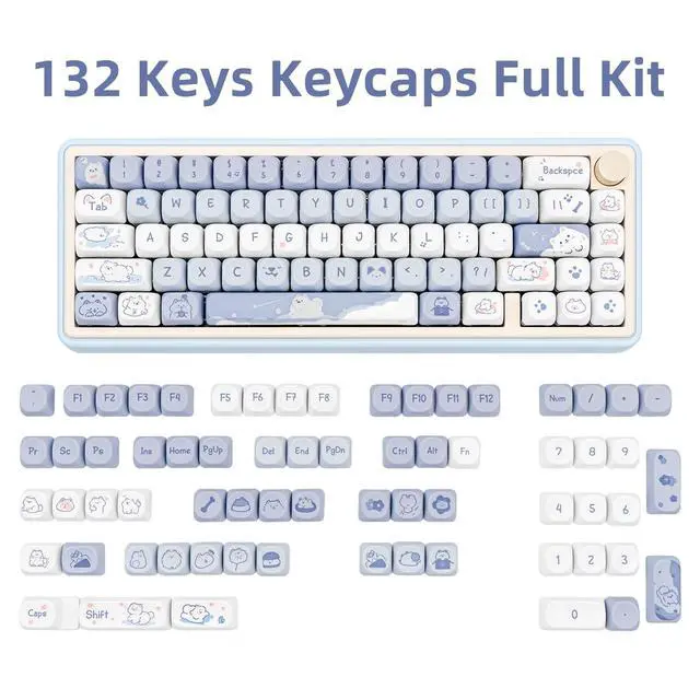 Classic DesignThis PBT keycap is designed to be more ergonomic in reducing hand fatigue and discomfort caused by prolonged typing to provide a more comfortable typing experience ^^ MOA Profile KeycapsEvery single key of the MOA profile is the same height and shape. Have a cuter, rounder look than XDA, which is ideal for making a variety of theme keycaps ^^ Dye-sublimation&PBT KeycapsThe dye sublimation PBT keycaps provide durability, using advanced dye sublimation technology making the pattern/letter not fade. Which is not easy to be oiled and grainy, and the dye sublimation process is not easy to wear off ^^ Widely CompatibleComing with a set of 132-key keycaps which is compatible with most mechanical switches gaming keyboard, such as Cherry, Gateron, Outemu, Kailh.