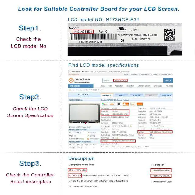 N173FGE-E13N173FEG-E23Packing list: 1 VGA LCD Controller Board VS-RTD2556HV-V11 30Pin Signal Cable1 Keyboard With Cable