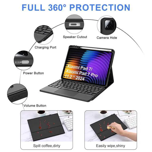 Magnetic Detachable Wireless KeyboardThe xiaomi tablet 11.2 xiaomi pad 7 pro keyboard and case are magnetically detachable, which means the keyboard or case can be used alone, ultra-strong magnetism makes the keypad securely attached to the protective case while typing