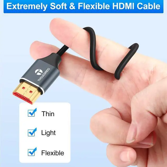 Thsucords 8K Silicone HDMI Cable 16.4FT, Flexible Slim High Speed HDMI 2.1 Cord Supports 8K@60Hz, 4K@120Hz 144Hz 48Gbps