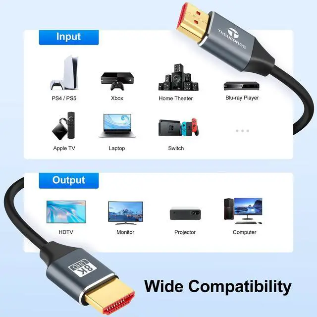 • Wide Compatibility The length of 8K Silicone flexible HDMI is 16.4FT. Compatible with popular & Latest devices including PS5/PS4, X-box Series X/One/360, LG/Samsung/Sony QLED TV, Laptop, Tivo, Vizio, DVD/Blu-ray player, Projector, etc.