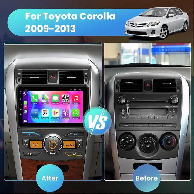 Asin: "B0CKMQK8YL" on. ^^ Android 13 System& 4G+64GAndroid 13 operating system, 4G ROM ensure smooth and fast operation, 64G RAM allow you download more things. Provide you with a more comfortable experience and convenient operation on this toyota corolla radio. ^^ Wireless Carplay & Android AutoConnect your iPhone or Android phone with ease through either a wired or wireless connection with toyota corolla stereo. Access all your favorite apps and features such as phone book, notifications, messaging, maps, and music. ^^ GPS Navigation & WiFiThis corolla radio built in offline and online map. When you connect WiFi you can use the GPS navigation anywhere on this Toyota corolla stereo. By WiFi you can download apps in APP Store, as the same as Mobilephone ^^ Bluetooth & FM/RDS RadioFast match with phone, this corolla stereo supports hands-free calling, music playback, voice functions etc. Enjoy 18 preset stations and manual, semi-automatic, and fully automatic channel search with stable FM radio. High-quality FM/RDS radio provides channel broadcasting, real-time weather forecasting, and road conditions. ^^ After-sales Support The package for 2009-2013 toyota corolla includes adapter, power cable, external microphone, 1080P AHD backup camera and everything you need for installation.