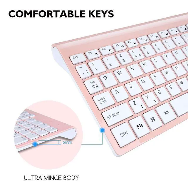 Wireless World is More FreeDistance is no longer a problem, stable and reliable 2.4G wireless technology connection, up to 10 meters of control distance to relieve wired constraints and enjoy wireless life smoothly ^^ Scissor Switch Key is More ComfortableThe keyboard adopts a scissor Switch Key design, Uniform force distribution, low sound, short travel, and smooth pressing provide a comfortable and quiet input experience ^^ Rebound is More EffortlessAccurate and fast typing without delay, rebound smoothly and evenly, fast response to hand tapping feedback for long-lasting typing without wrist fatigue.