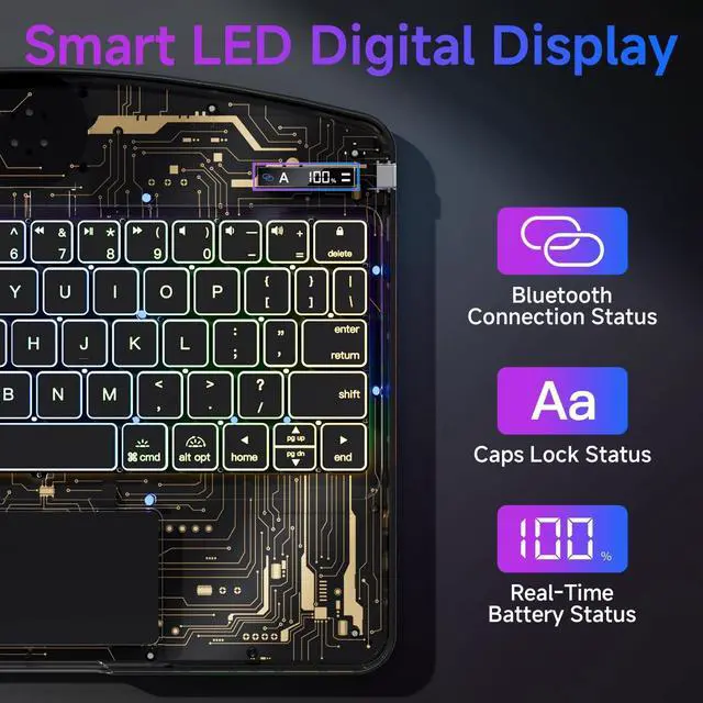 The sturdy stand provides a secure hold in any position for optimal comfort and productivity. ^^ Real-Time Battery Status & Long Battery Life Equipped with unique battery display and a powerful rechargeable battery, The keyboard case offers 90days of use on a single charge via the included USB-C cable. This battery display clearly shows the iPad keyboard case's battery level, eliminating your anxiety about the unknown remaining battery. ^^ Secure Stylus Holder & Full Protection Features a dedicated slot that securely stores and enables charging for your 2nd-generation stylus pen (compatible with Apple Pencil), ensuring it's always at hand.