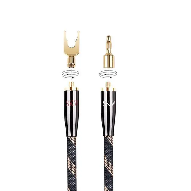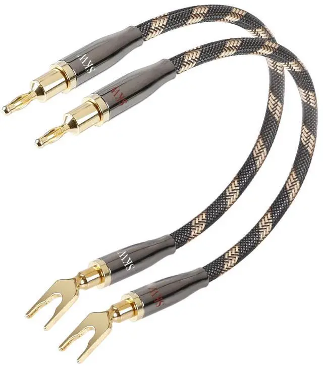 Convertible 24K gold plated plugs: The banana and spade plugs are threaded and screw on to the ends of the cables. ^^ Length of 20cm ( 7.8 inch), Set of 2 (2 cables). ^^ Good look and