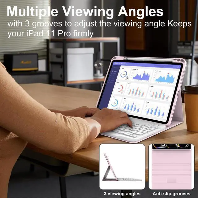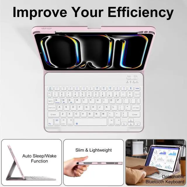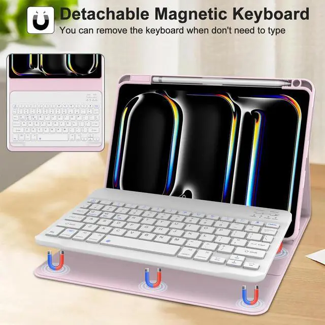 Keyboard Case for iPad Pro M4 11 inchThis keyboard case is only compatible with iPad Pro 11 inch (M4) 2024 (Model: A2837 A3006 A2836). Not for other ipad models. please check the back of your iPad to confirm the model number. ^^ Detachable Magnetic iPad Pro 11 inch M4 KeyboardThe ipad pro m4 11 inch case with keyboard comes with a wireless bluetooth keyboard. Keyboard case with magnetic design attaches securely to ipad pro 11 inch, transforming the iPad into a laptop in less than a few seconds, improving your work efficiency. ^^ Adjustable 3 Viewing Angles for iPad Pro 11 inch Case M4The ipad pro 11 inch case 2024 support 3 viewing angle, built-in 3 non-slip grooves, supports multiple viewing methods. You can choose your favorite angle and enjoy it. ^^ Stable Bluetooth ConnectionConvenient and fast Bluetooth connection allows you to use the ipad pro m4 11 inch case with keyboard anywhere, anytime. The ipad pro m4 11 inch case provides excellent protection for my iPad while still allowing easy access to all ports and buttons. ^^ Full ProtectionThe ipad pro m4 11 inch case made of soft TPU and flexible TPU inner shell, which are drop-proof and scratch resistant, also not slippery or stick while carrying it around, perfect all-around protection for your tablet.