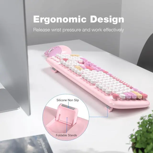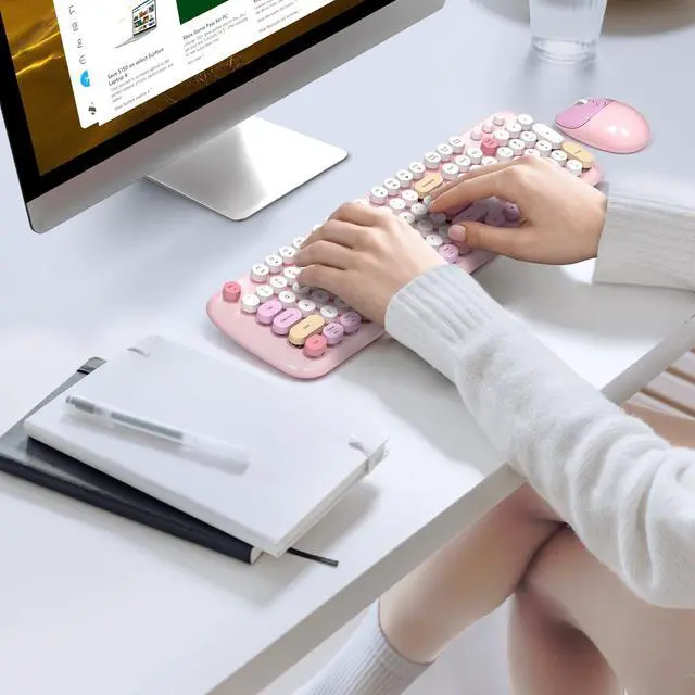 Full-size Office Keyboard-This colorful cute keyboard features 104 keys with round keycaps in a typewriter - style design. It looks retro and gives you a great typing feel. The keycaps can be removed for easy cleaning. Use it with our colorful mouse and enjoy typing!