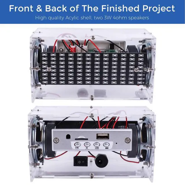 Cool Spectrum Lighting Effects: Unlike other DIY kits, as the music plays, MiOYOOW Spectrum Bluetooth speaker kit showcase varying spectral effects that dynamically change in response to the rhythm, this adds a visually appealing element to your listening experience. Suitable for home and office use. Looking for the perfect present? Search no more, as this unique and versatile gift will surely impress and delight! ^^