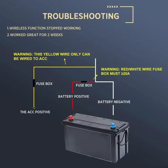 Please Note - Installaion FUSE BOX MUST>=20A ^^ Auto Power on with Your Vehicle Ignition & Easy to Install - Power supplied by your car directly. Default boot recording, no missing seconds. Advanced safety design without risk of battery explosion and with much longer life; Smart segmented storage, seamless loop recording, never full disk. Wired camera system without any signal problem. One power cord supports the whole system. The camera only needs to connect the extension cable from the monitor. ^^ 4 channel waterproof cameras & Super Night Vision & Wide View Angle - High-definition glass light-transmitting camera, transparent imaging, high-definition, detailed performance beyond your imagination, clearer forensics in low light.