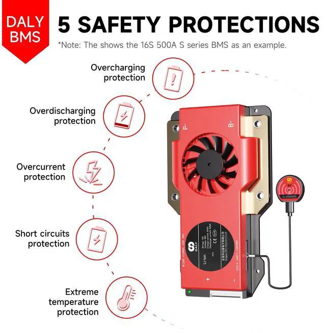 SUPPORTS MULTIPLE PARALLEL SYSTEMS: The built-in parallel circuit of DALY BMS supports 8+ battery packs, letting you scale up capacity simply by adding more batteries - more power, longer runtime. ^^ DALY BMS WITH 5A