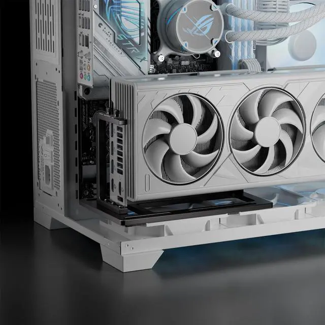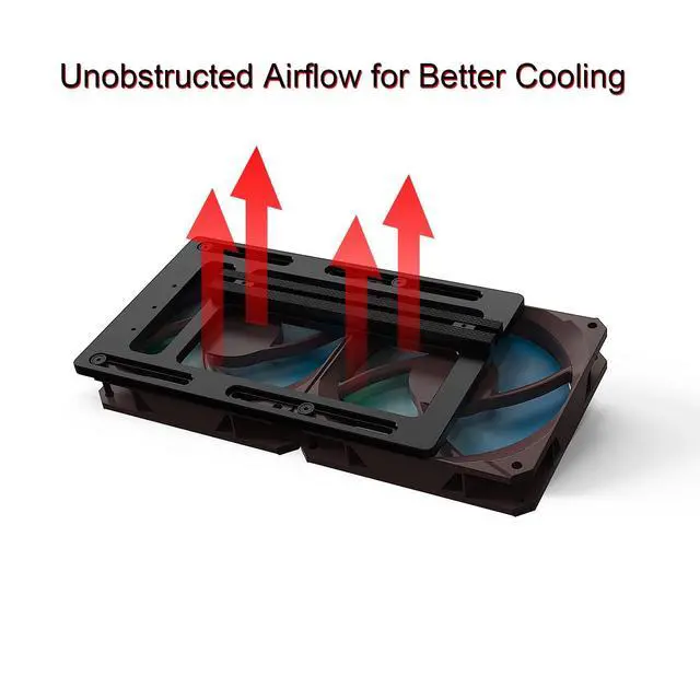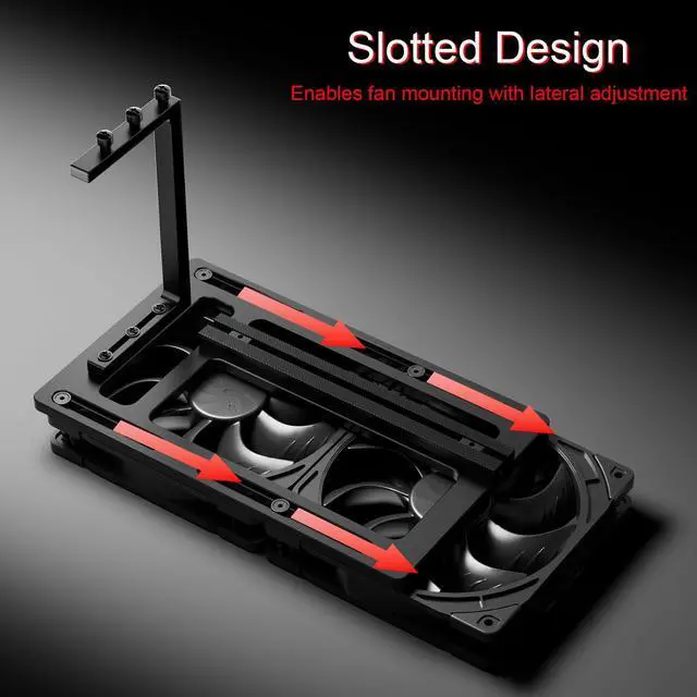 ^^ Bottom Fan Support & Open-Airflow Design The base allows the installation of a 12mm bottom-mounted case fan. With slotted mounting holes for horizontal adjustment and an open-frame structure, it ensures unobstructed airflow and optimal cooling efficiency. ^^ Universal Compatibility Designed for independent installation, free from GPU bracket restrictions. Perfect for diverse PC builds and custom setups, regardless of your case structure.