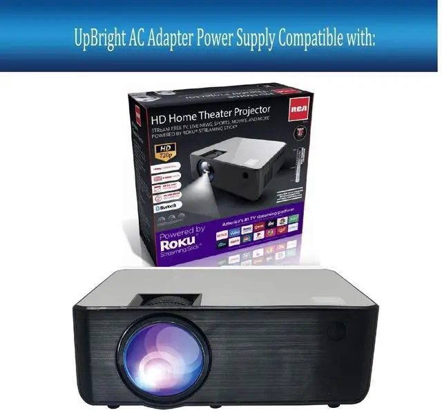 UpBright New AC DC Adapter Compatible with RCA RPJ133 RPJ133-B RPJ133-12DISP2 RPJ133B RPJ13312DISP2 720P Smart Roku WiFi HD Home Theater Projector Power Supply Cord Cable PS Battery Charger Mains PSU