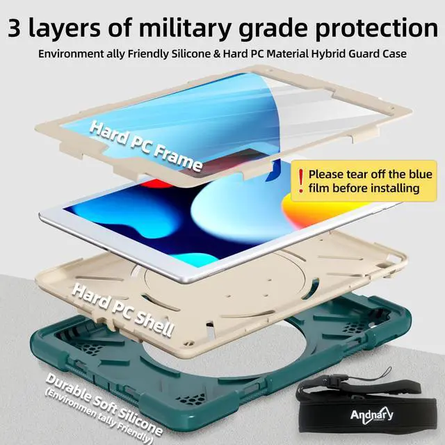 Grade Shockproof Design: iPad 9th/8th/7th cover is made of durable hard PC + Soft silicone +screen protector, 3-layer full body protection structure provides perfect protection. 4-Corner Thickened Shock Absorption and Drop Protection, Protects your iPad 10.2 inch case against scratches and accidental drops, bumps and impacts.
