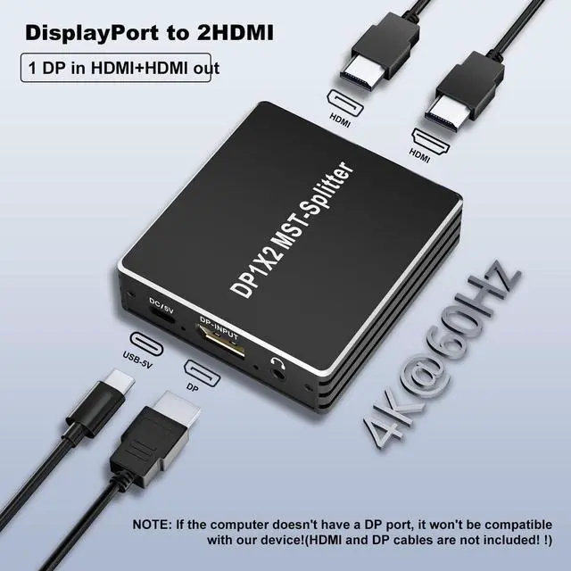 UHD High Resolution: Tailaiera DisplayPort to Dual HDMI splitter adapter supports resolutions up to 4K@60Hz, allowing you to add dual hdmi monitors to your PC, laptop, or notebook. Ideal for multi-stream displays in schools, conference rooms, worship halls, retail stores, and more, it provides ultra-high-definition display content. To achieve the maximum resolution of 4K@60Hz on dual hdmi monitors ^^
