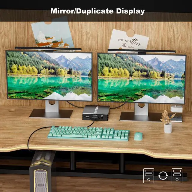 Mirror Mode: This DP input signal to Dual UHD receiver devices, dual HDMI port splitter 1 in 2 out supports both extended and mirror modes. It adds dual hdmi monitors to your DisplayPort desktop/laptop/graphics card as a DisplayPort splitter for dual hdmi monitors. Windows OS supports both MST and SST, while macOS only supports SST (Mirror Mode AAA/ABB). *Do not connect to other DP docks or hubs. *Most laptops and PCs with integrated graphics may only be able to mirror the screen (ABB/AAA) ^^ 4K@60Hz