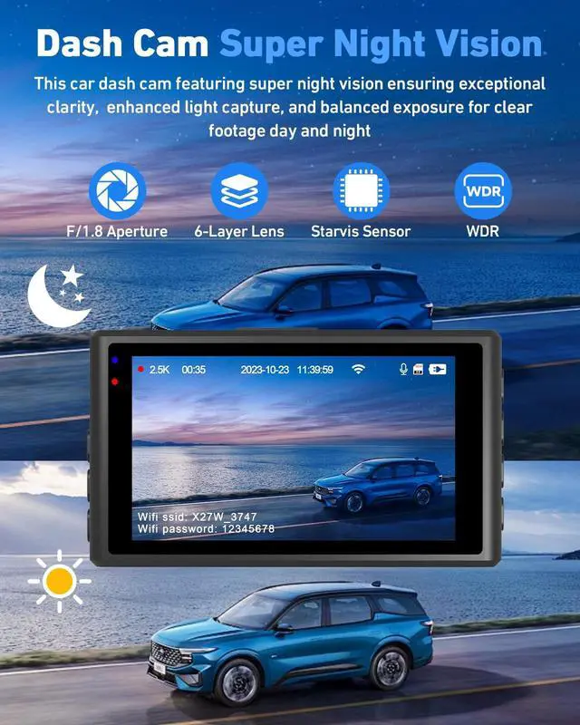 Thanks to HDR/WDR technology, the dual cameras achieve exceptional low-light performance by automatically balancing exposure in challenging dark settings. This guarantees sharp and detailed recordings of traffic scenarios, even during night-time drives ^^ Intimate After-sale Service --- Our dash cam front and rear offer 1 year shelf life and lifetime professional technical assistance, if you have any product questions, like accessories missing or damaged, please email our customer service, we will quickly answer you and solve the problems for you