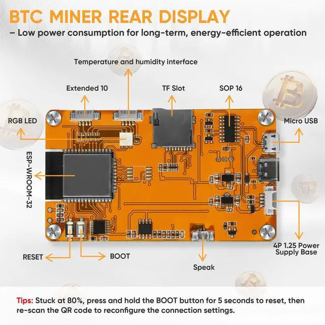 Low-Power & Efficient Operation: Built on the ESP32 architecture, this bitcoin miner delivers efficient hashing performance with minimized heat output and reduced energy consumption. Its low-cost, low-maintenance design ensures reliable long-duration operation, making it suitable for continuous educational use, technical exploration