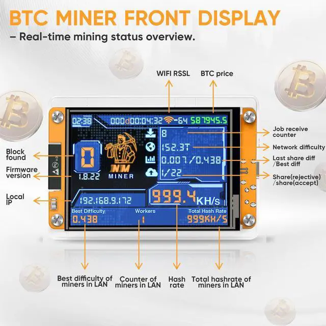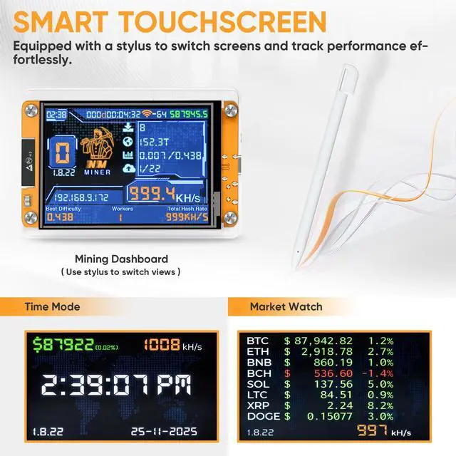 2.8-inch Smart Real-Time Display: Equipped with a 2.8-inch intelligent display, this lucky miner presents hashrate, power usage, and real-time operating status clearly at a glance