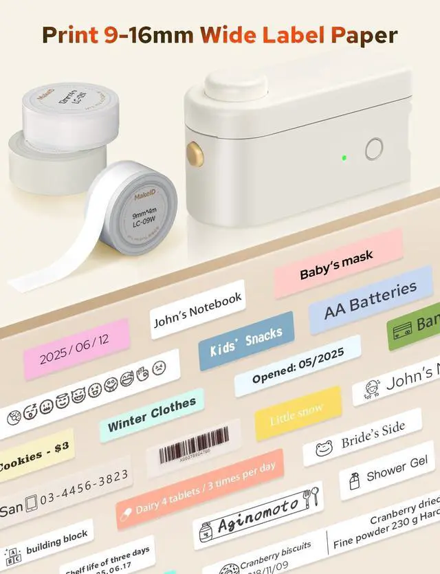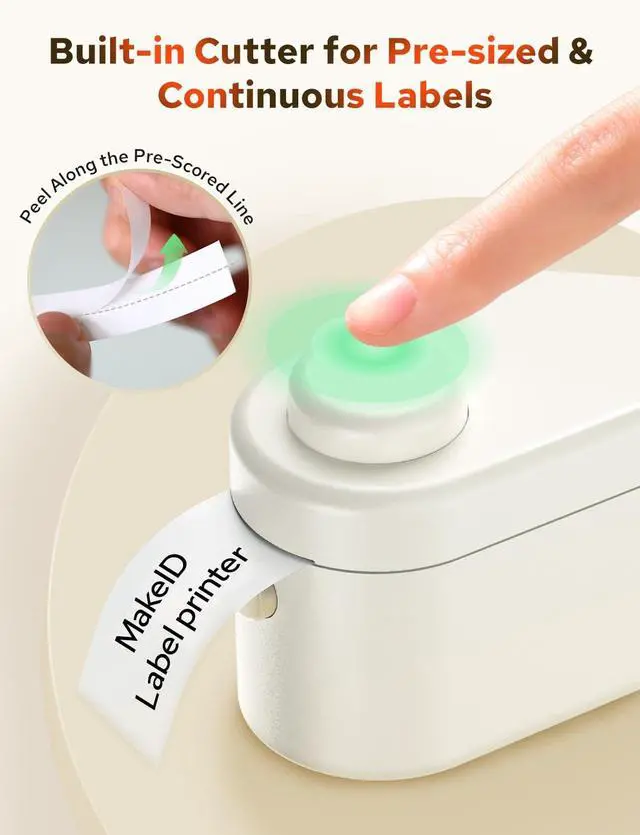 Smarter Printing, Anywhere The upgraded MakeID L1-C label maker with a built-in chip weighs only 125g and prints custom labels using fonts, icons, emojis & symbolsideal for home, school, or office organization ^^ Bluetooth Connectivity, Now Even Smoother With a smarter chip and improved Bluetooth stability, connect wirelessly to iOS or Android devices. Just download the app and start creating personalized labels in seconds ^^ Crisp, Waterproof Prints That Last Enhanced thermal technology delivers sharp 203 or 300 DPI prints. Labels are waterproof, fade-resistant, and leave no sticky residueperfect for long-term use ^^ One-Touch Precision Cutter Our upgraded model features a built-in cutter that makes trimming labels quick and clean.