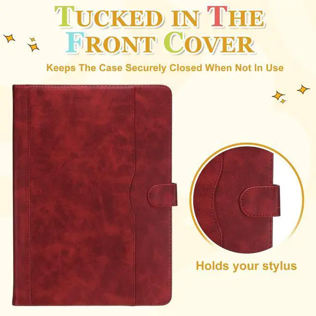 TO GET]: This tablet case is made of PU leather, with a soft, silky surface that feels comfortable to the touch, offering excellent wear-resistant and keeping your tablet looking new for longer. Four internal silicone hooks securely hold your tablet in place, providing a snug fit and maximum protection against drops and scratches.