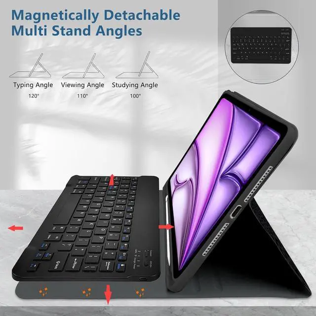 Model number: A3266 A3267 A3270 A2902 A2903 A2904 A2588 A2589 A2591 A2324 A2072 A2316 A2325, Not compatible with any other devices. Please check the back bottom of your tablet to find the model number ^^ [Pencil Holder and Multi-angle Adjustable Support] This tablet case has a built-in Pencil holder that makes it easy to carry Pencil and take it out. The iPad case has three grooves that can be used at three angles, and is made of non-slip material that supports the iPad to stand up ^^ [Rechargeable Keyboard] The iPad Bluetooth keyboard has a built-in battery with high stability, so you don't need to replace the battery. You can charge the keyboard using the charging cable that comes with the keyboard. The keyboard has a Bluetooth acceptance range of 10 meters. If you don't need to use the keyboard, you can remove it and turn it into a regular iPad case, which makes for a handy experience ^^ [Automatic Sleep/Wake] This iPad case will automatically put your iPad to sleep when you close the front cover of the case. Because an iron keyboard may prevent magnets from attracting to each other, remove the keyboard for optimal sleep/wake up ^^ [Include Conten] The box contains the case, Bluetooth keyboard, keyboard charging cable, and instruction manual.