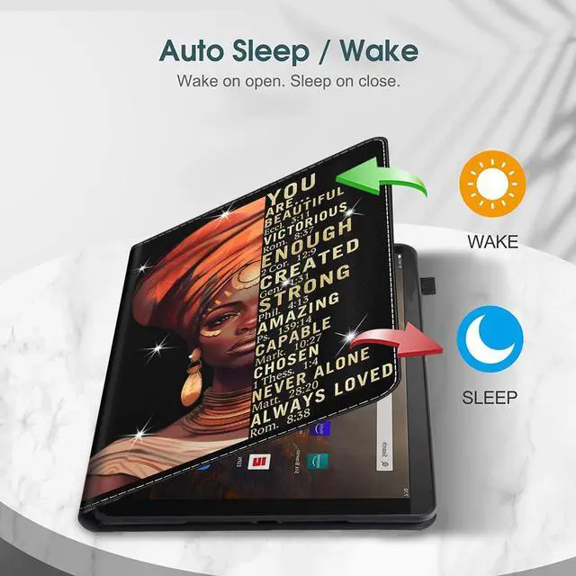 Has an elastic strap to use to hold the cover tight; The elastic loop is very convenient for a pen ^^ Built-in magnetic strip provides auto sleep / wake feature, automatically wakes or puts your Fire HD 10 Case 2019/2017 10.1 inch tablet to sleep. Built-in card slots for placing your credit card / ID card / notes and cash. and designed with a smart holder for stylus/pen (stylus NOT included). ^^ Fashion design available in a variety of bright and fun pattern - ranging from classic to vibrant. If you have any quality problems, you can contact us at any time.