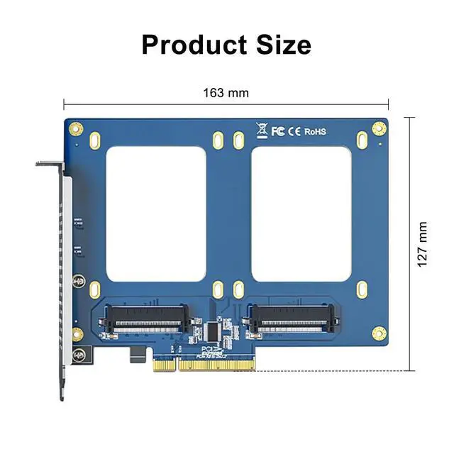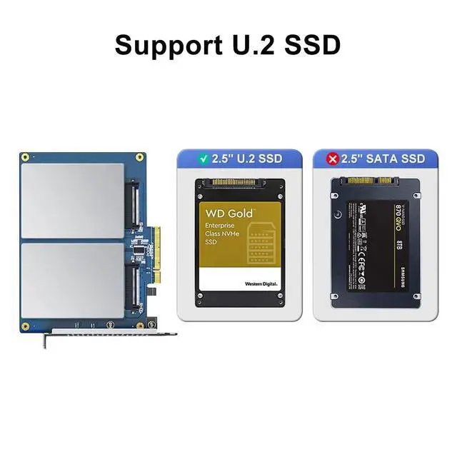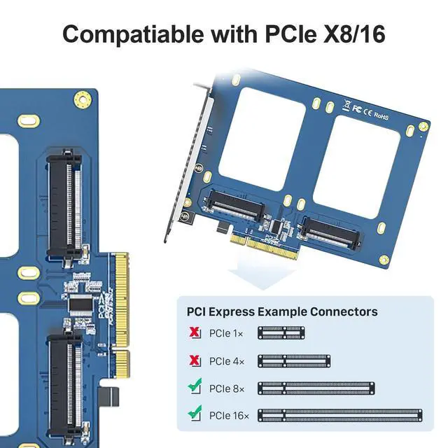 [Dual U. 2 NVMe Storage Expansion] Seamlessly mount two 2.5 -inch U. 2 NVMe SSDs into your desktop or server via a single PCIe 3.0 x8 slot. Drastically increase your system responsiveness and internal storage capacity with enterprise-grade NVMe technology. ^^ [PCIe