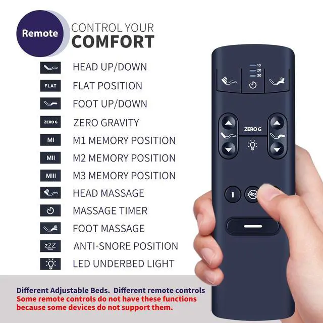 Durable & High-Quality DesignCrafted with durability in mind this remote control is built to withstand daily use. The robust high-quality construction ensures reliable performance and long-lasting control of your adjustable bed.